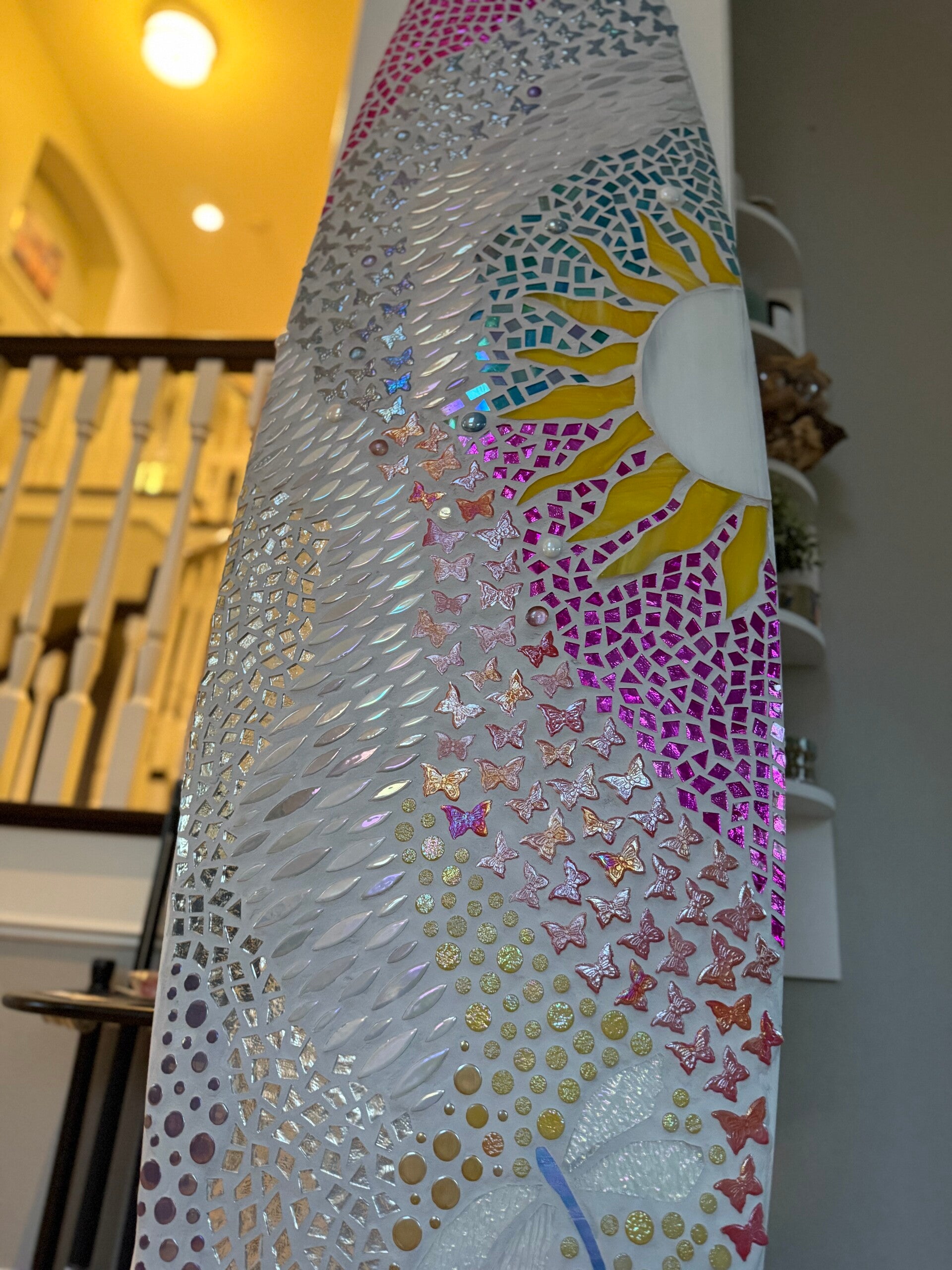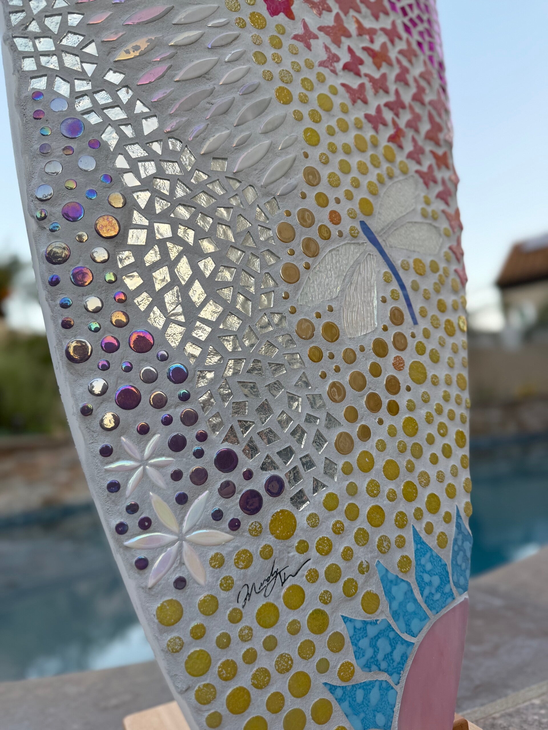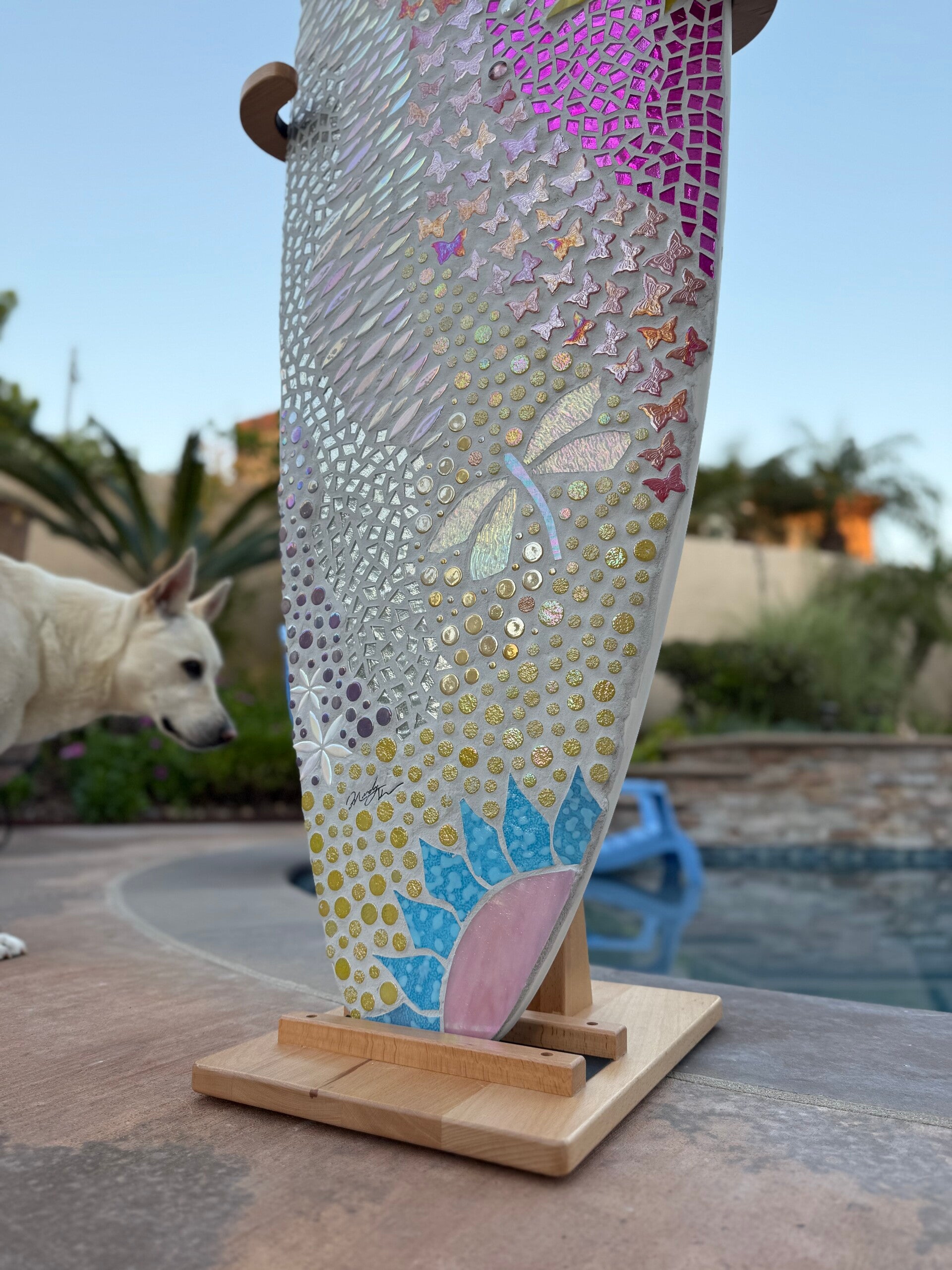 This is a very fun board this one is available but I can always make it custom as well with different colors and with or with out the dragon flys. The some colors will most likely vary some between boards and the design will not be an exact match as I don't have any kind of template made for these. I use used surfboards in great condition and the size rages from 4'8"-6'4" depending on what's available and what fits your space best.